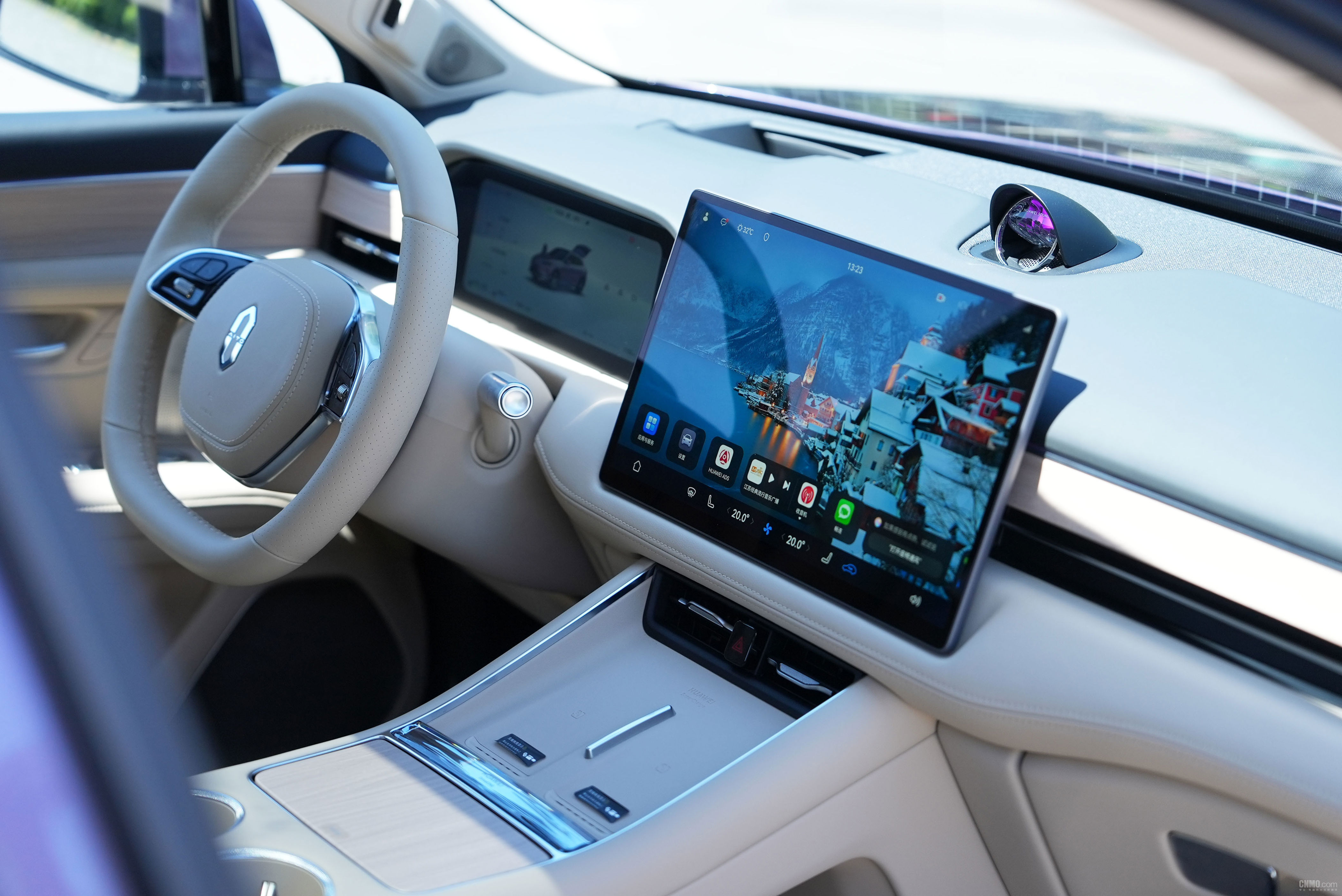 内饰方面,这款问界新M5 Ultra采用的是韶华杏配色,整体看起来非常简洁纯粹,配合幻影紫的外观,热烈之中透露出一丝清爽。